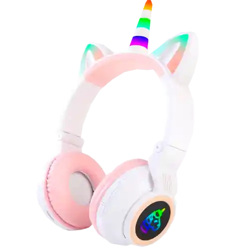 Disfruta música con estilo y color con las Diademas Inalámbricas Unicornio STN-27: luces LED, diseño cómodo y sonido divertido. 🦄🎧✨