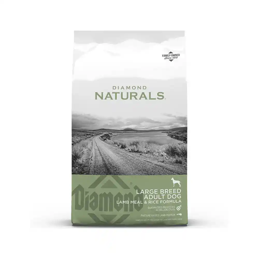 Diamond Naturals Adult Lamb Dog Formula está formulado para satisfacer los niveles nutricionales establecidos por la AAFCO Dog Food Nutrient Profiles para el mantenimiento. Los niveles adecuados de nutrientes necesarios para las razas grandes, proporciona la energía para prosperar; vitaminas y minerales de SUPERFOODS, incluyendo frutas como los arándanos y las naranjas; ácidos grasos omega para una piel y pelo sano. Cada ración incluye PROBIÓTICOS PROPIOS de la cepa K9 específicos de cada especie, además de antioxidantes y prebióticos, para ayudar a mantener una digestión saludable, el sistema INMUNE y la salud y el bienestar general.
