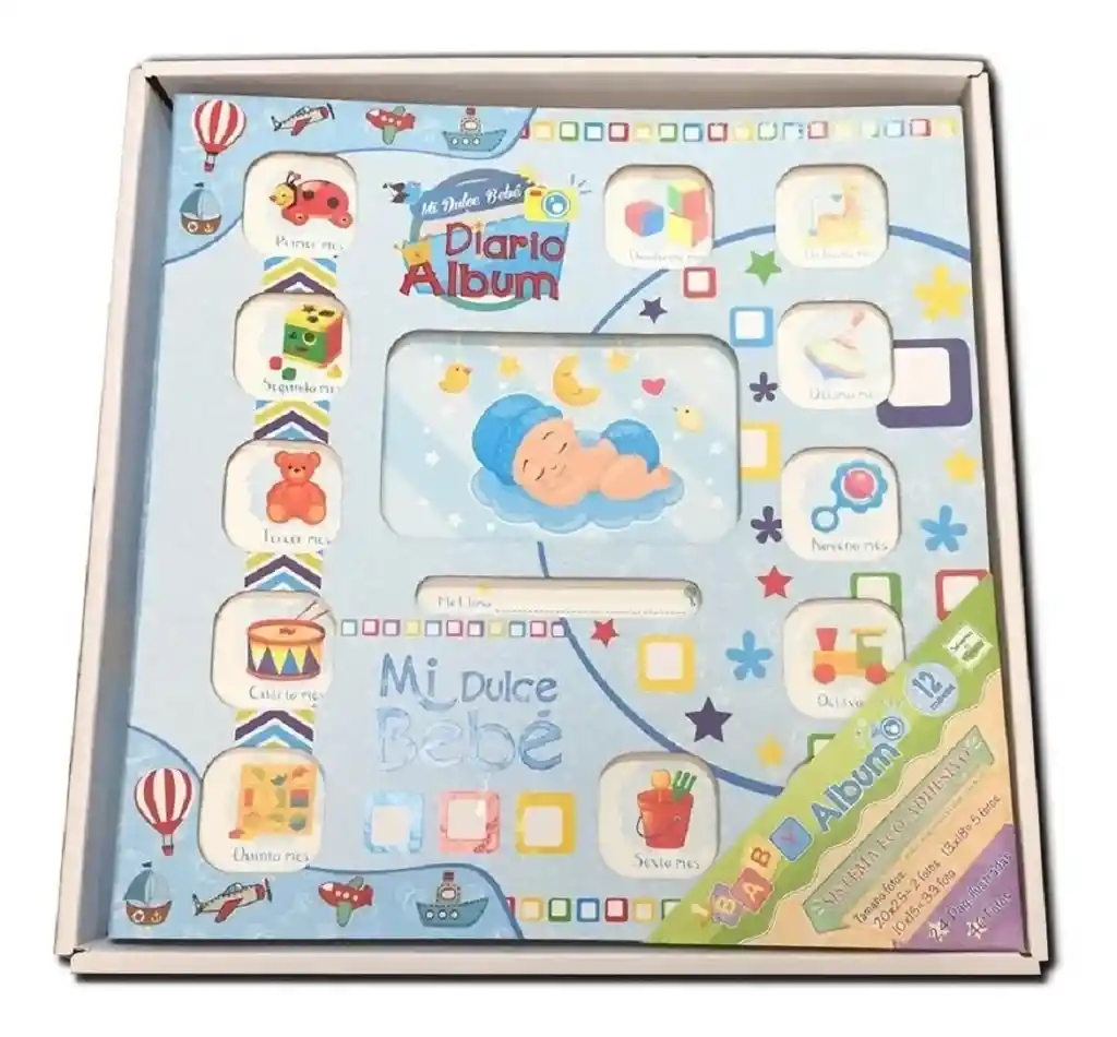 Diario Álbum De Fotos Recuerdos Bebe Infantil Niño Unisex Grande Azul