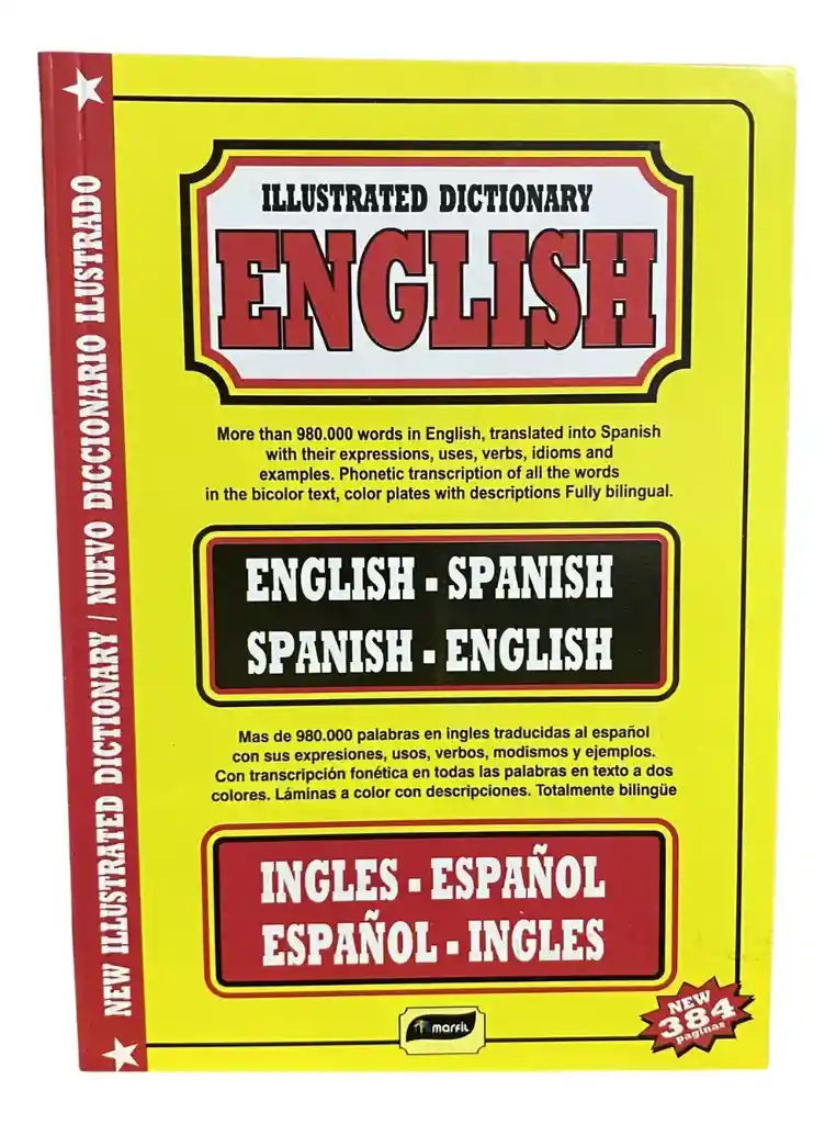 Mas de 980.000 palabras en ingles traducidas al español. Con expresiones, usos, verbos, modismos y ejemplos. Con transcripción fonética en todas las palabras en textos a dos colores. Laminas a color con descripciones.