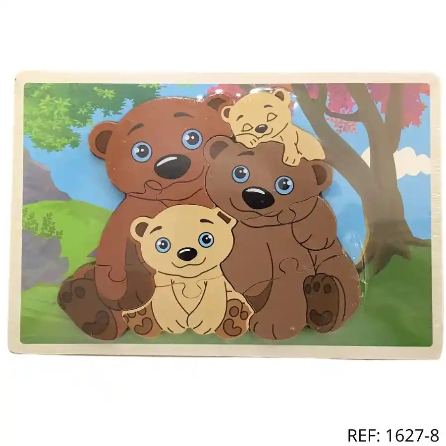 Rompecabezas de madera con ositos adorables. Perfecto para niños pequeños, estimula el juego, la concentración y la coordinación.