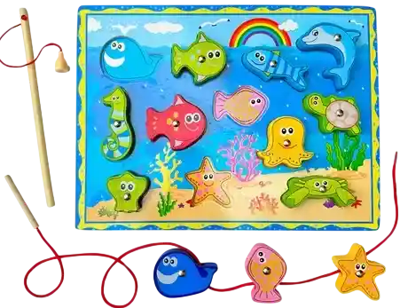 Pt21211 Este set incluye una tabla de madera con formas de animales marinos como peces, tortugas y estrellas de mar, cada uno con un imán incorporado. Los pequeños deberán usar la caña de pescar que viene incluida para "pescar" las figuras y desarrollar diversas habilidades mientras se divierten. Ventajas del Juego de Pesca: Estimula la coordinación: La actividad de pescar las figuras ayuda a los niños a mejorar la coordinación mano-ojo mientras intentan capturar las formas con el imán de la caña. Desarrollo de habilidades motoras finas: Al manipular la caña de pescar y las piezas, los niños ejercitan sus habilidades motoras finas, esenciales para su desarrollo. Aprendizaje lúdico: A través del juego, los niños aprenden sobre los animales marinos de una manera divertida y educativa. Es una excelente forma de iniciar conversaciones sobre el mundo marino. Fomenta la paciencia y la concentración: El juego requiere que los niños sean pacientes y se concentren para pescar las figuras, lo que les ayuda a desarrollar estas importantes habilidades de manera entretenida. Material ecológico y seguro: La tabla y las figuras están hechas de madera de alta calidad, con acabados suaves y seguros para los niños, garantizando un juego libre de sustancias tóxicas. Perfecto para actividades en grupo o individuales: Ya sea jugando en solitario o en compañía de amigos o familiares, este juego es ideal para fomentar la interacción social y el trabajo en equipo.