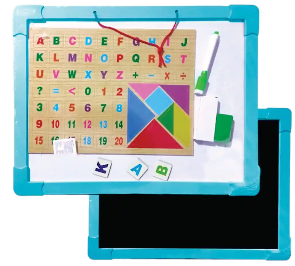 Juguete para que los niños reconozcan los números, las letras, sumen, resten, multipliquen distingan colores, y armen figuras con el tangram. Cultiven la capacidad de los niños para pensar en el espacio, ejerciten la imaginación del niño, den juego a la creatividad del niño. Los padres pueden ayudar o jugar con sus hijos, mejorar el intercambio emocional entre los padres. • Magnético doble faz con estructura resistente. • Superficie se limpia fácilmente