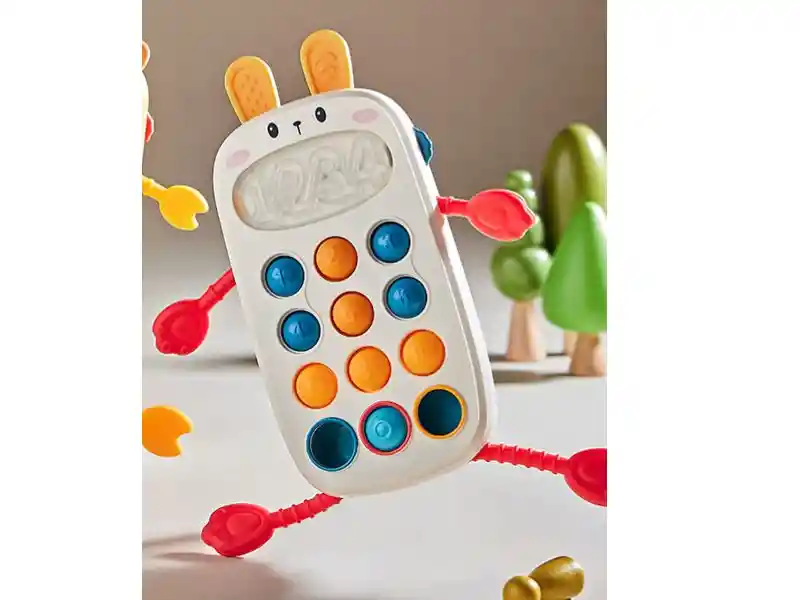 Lo que tienes que saber de este producto Diseño: Telefono Interactivo Conejo 8en1 El material es plástico. Funciones: sonido. Incluye ventosa. incluye mordillo. Dimensiones: 17cm de largo x 10cm de ancho y 17cm de alto.