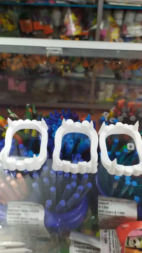 Dientes de vampiro pequeños de plástico color blanco.