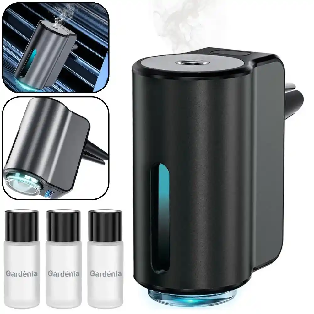 Difusor Ambientador Inteligente Ultrasonico para Carro Rejilla De Aire Aroma a Gardenia Transforma por completo la experiencia de conducir con este innovador sistema de aromatización inteligente para tu vehículo. Olvídate de los ambientadores de cartón tradicionales que pierden su olor en pocos días. Este dispositivo utiliza tecnología de punta para mantener tu carro siempre con un aroma fresco, elegante y a tu medida. Características: - Fijación en Rejilla de Ventilación: Diseñado con un clip posterior recubierto de silicona que se sujeta firmemente a las aspas del ventilador del aire de tu carro. Esto no solo ahorra espacio en el tablero, sino que aprovecha el flujo de aire del vehículo para distribuir la fragancia de manera uniforme por todo el auto. - Aroma Exclusivo a Gardénia Incluido: El kit viene equipado con 3 frascos de aceite esencial con aroma a Gardénia. Una fragancia floral, sofisticada y relajante, ideal para eliminar malos olores y crear un ambiente de confort durante tus trayectos diarios o viajes largos. - Tecnología de Atomización Ultrasónica: No solo perfuma, sino que micro-pulveriza el aceite esencial convirtiéndolo en una brisa fina y visible. Esta tecnología garantiza que el aroma no sea abrumador, no manche las superficies del carro y rinda muchísimo más. - Totalmente Recargable (Tipo-C): Cuenta con una batería interna de larga duración y un puerto de carga universal Tipo-C. - Control Fácil e Intuitivo: Cuenta con un único botón superior de control: Pulsación larga: Enciende o apaga el dispositivo. Pulsación corta: Intercala entre los diferentes modos de pulverización. - 3 Modos de Pulverización Inteligente (Indicador de Luz LED): Adapta la intensidad del aroma según tus gustos o el tamaño de tu vehículo gracias a su anillo de luz LED inferior que te indica en qué modo te encuentras: * Luz Morada (Fragancia Intensa): Ideal para cuando recién subes al auto o necesitas eliminar olores fuertes rápidamente. Pulveriza durante 0,2 segundos con intervalos de descanso de 10 segundos. * Luz Azul (Fragancia Media): Perfecto para mantener un aroma constante y agradable durante la conducción regular. Pulveriza durante 0,2 segundos con intervalos de descanso de 90 segundos. * Luz Verde (Fragancia Ligera): Diseñado para viajes largos donde buscas un toque sutil de frescura sin saturar el ambiente. Pulveriza durante 0,2 segundos con intervalos de descanso de 300 segundos. Especificaciones: - Tipo de dispositivo: Difusor ultrasónico inteligente para vehículo. - Método de instalación: Clip de sujeción para rejilla de aire. - Interfaz de carga: Puerto USB Tipo-C. - Indicador visual: Anillo de luz LED (Morado, Azul, Verde). - Ventana de visualización: Ranura lateral transparente para verificar el nivel de líquido restante. Contenido del paquete: 1x Ambientador principal con clip para salida de aire. 3x Frascos de fragancia (Aroma: Gardénia). 1x Cable de carga Tipo-C. Nota: Una vez terminadas las fragancias incluidas se recomienda reponerlas con esencias 0% aceitosas dado que que el filtro del atomizador puede taponarse y evita un funcionamiento optimo del mismo.