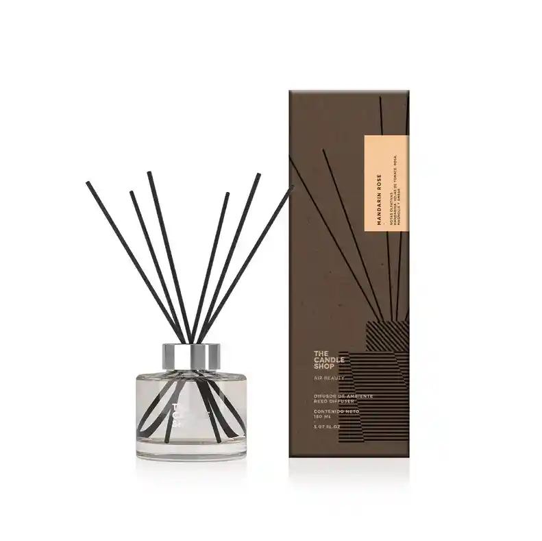 DIFUSOR GLOSSY MANDARIN ROSE Difusor de Ambiente en envase de vidrio con varillas sintéticas negras Contenido Neto: 150 ml. Presentación en caja individual. Duración estimada: Aproximadamente 30 días, dependiendo de la fragancia elegida y las condiciones de humedad del ambiente donde se lo utilice.