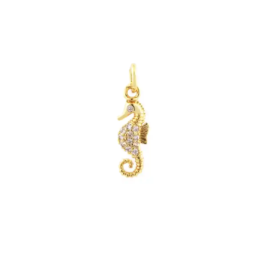 Dije Caballo de Mar con micro incrustación de zircón Acero Inoxidable con baño de oro de 18k Recomendaciones y cuidados: Para preservar el color te recomendamos no entrar a piscinas o el mar, tampoco aplicar líquidos y químicos tóxicos(perfumes, splash, cremas, alcohol, etc) Almacena tus joyas en los empaques de tela entregados con tus productos. POETRY no garantiza que el baño de oro y cualquier material de nuestros modelos dure para siempre. Las piezas bañadas y chapadas en oro, acero inoxidable, acero titanio, son por defecto, más frágiles y susceptibles de perder el color con el paso del tiempo. Para mayor información te invitamos a leer el link cuidado de tus Accesorios.