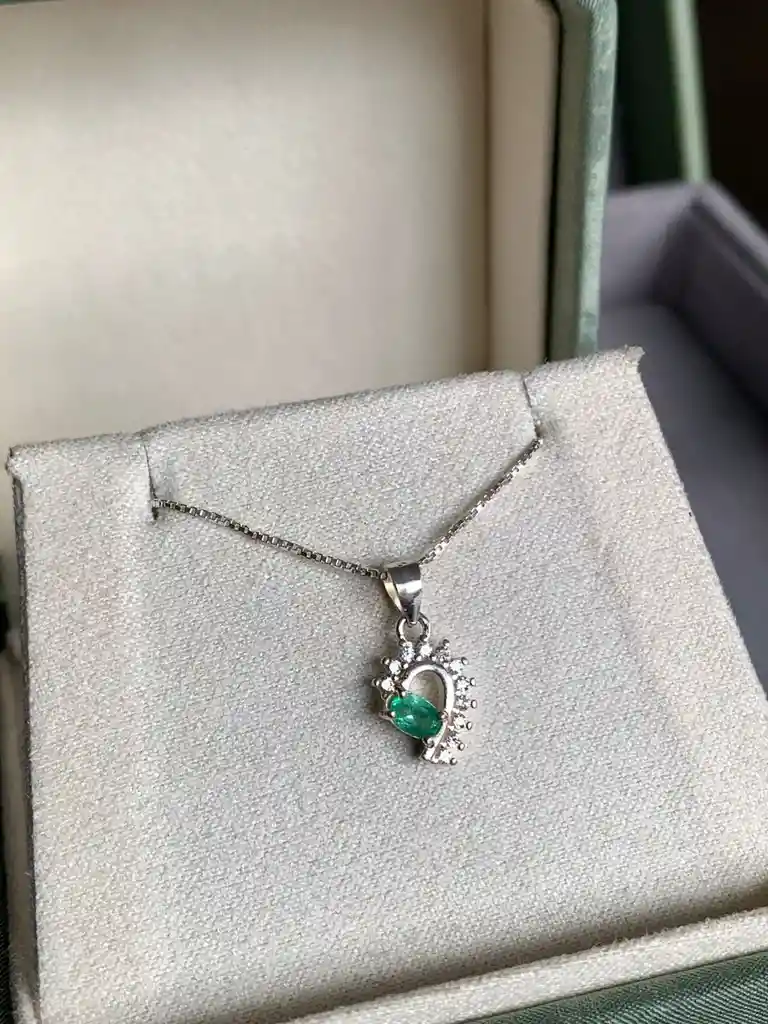 Elegante dije en plata ley 925, con esmeralda natural de hermoso color y circones que aportan brillo y sofisticación. Ideal para cualquier ocasión. 🎁 Incluye caja de regalo. 💌 Opción de mensaje personalizado (solicitar con anticipación). Un detalle delicado, auténtico y lleno de estilo.