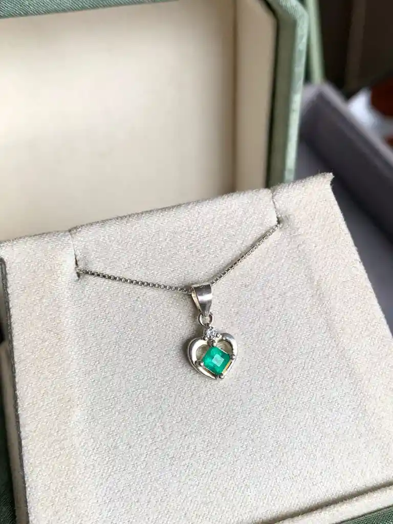Delicado dije en plata ley 925 con diseño en forma de corazón, que resalta una hermosa esmeralda natural y un sutil brillo de circones. Elegante, femenino y perfecto para cualquier ocasión. 🎁 Incluye caja de regalo. 💌 Opción de mensaje personalizado (solicitar con anticipación). Un detalle especial lleno de significado y estilo.