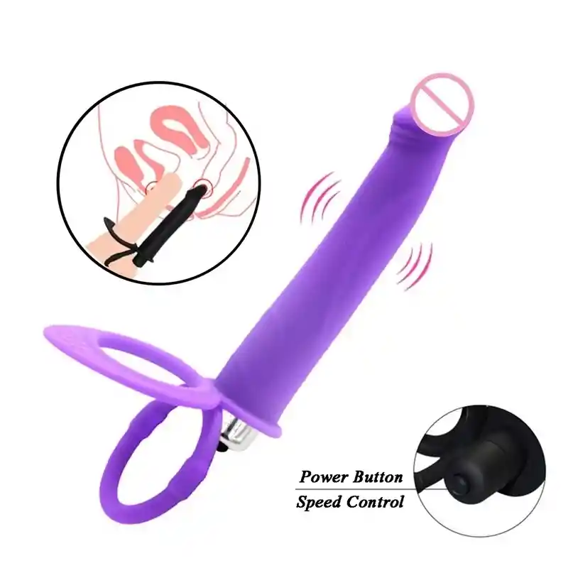 Vibrador pene anillo g-spot doble Penetración, Dildo anillo vibratorio Anal para retrasar eyaculación Juguete sexual recomendado para parejas, doble penetración