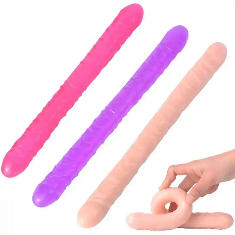 Color: Morado Consolador doble muy flexible y suave Para estimulación Vaginal y Anal o Para uso Lesbico Tamaño pequeño para principiantes Tamaño penetrable por cada lado: 13cm x 3cm Tamaño Total: 32cm x 3cm