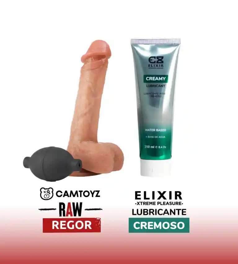 Dildo Eyaculador Regor + Lubricante Cremoso Explora una sensación auténtica con el Dildo Eyaculador Regor, diseñado con un sistema de bombeo manual que permite simular la eyaculación para un juego más interactivo y realista. Su textura suave y su diseño detallado hacen que cada uso sea una experiencia intensa y placentera. Incluye un lubricante cremoso, formulado para imitar la textura y apariencia del semen, proporcionando una lubricación duradera y segura para el cuerpo. Ideal para potenciar la sensación de realismo en tus momentos íntimos, ya sea en solitario o en pareja. Características: Dildo de silicona suave y flexible con detalles realistas Mecanismo de eyaculación manual Lubricante cremoso con textura auténtica, seguro para el cuerpo Compatible con preservativos y juguetes Fácil de limpiar y reutilizar Descubre una nueva forma de disfrutar con un producto diseñado para llevar la experiencia a otro nivel.Establecer imagen del producto