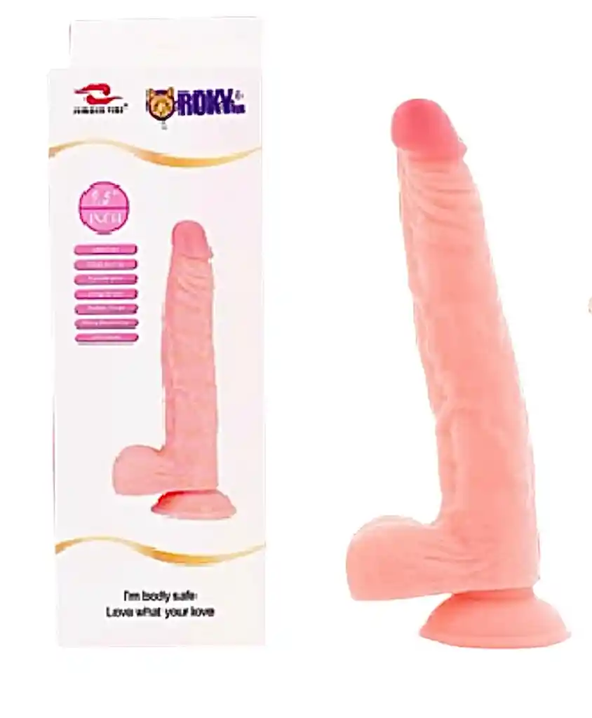 Largo total: 26 cm Largo Insertable: 20 cm Ancho: 4 cm Material silicona 100% Sumergible Con ventosa de succión Con testículos Apto para uso con arnés