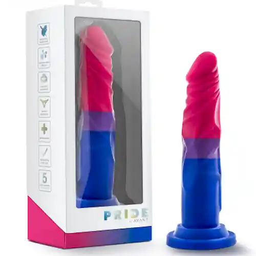 Serie Pride Avant Moderno y Con Estilo Con Formas Esculpidas a Mano Dildo de Colores Hecho en Silicona Curada 100% Segura Para el Cuerpo Compatible Con Arnés Con Copa de Succión Que se Adhiere a Cualquier Superficie Lisa. Tamaño 7 Pulgadas Grosor 15 Pulgadas.