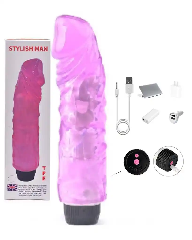 Color Morado Tamaño total: 21 x 6cm Dildo de Gran Grosor De Silicona Tiene una perilla para graduar la intensidad de vibracion Carga Usb