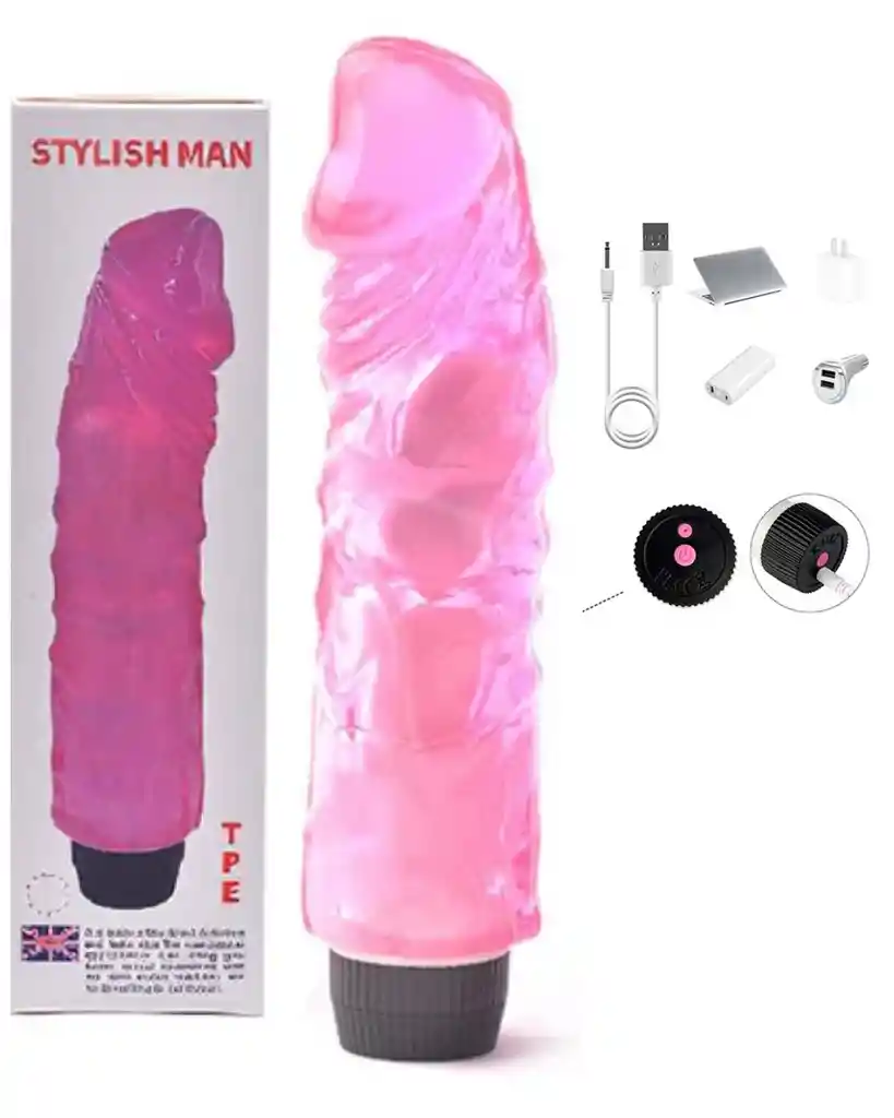 Color Rosa Tamaño total: 21 x 6cm Dildo de Gran Grosor De Silicona Tiene una perilla para graduar la intensidad de vibracion Carga Usb