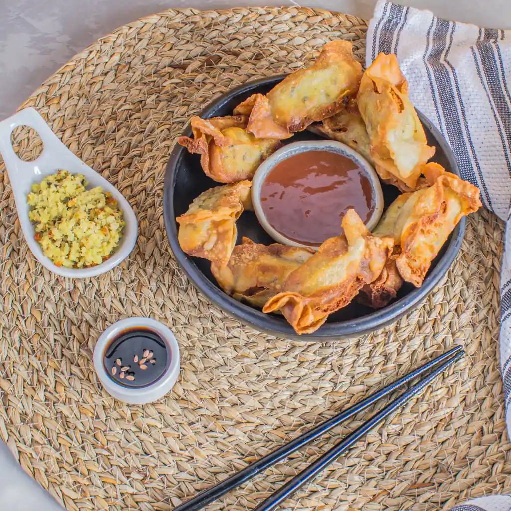 INGREDIENTES: Pollo, ajo, cebollín, jengibre, hierbabuena, albahaca, aceite de sésamo, sal, azúcar, curry.