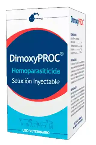 Medicamento DimoxyPROC solución inyectable hemoparasticida para el control y tratamiento de enfermedades ocasionadas por la bacteria Anaplasmas en bovinos, equinos, ovínos. caprinos y caninos En Bovinos, Equinos, Ovinos, Caprinos y Caninos para el tratamiento de enfermedades ocasionadas por: Anaplasma s.p., Babesia bigémina, Babesia bovis, Babesia equi, Babesia caballi, Babesia ovis, Babesia canis, Tripanosoma vivax y Tripanosoma evansi.