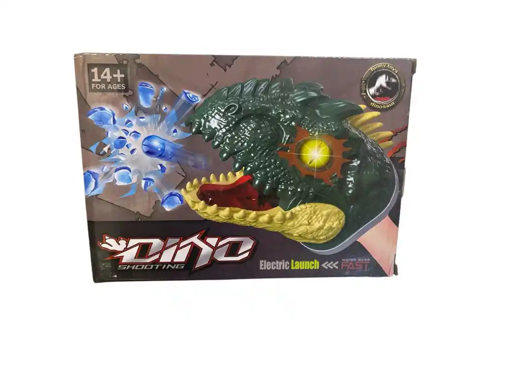 Cabeza de dinosaurio lanzadora de orbis, dispara esferas de gel con gran potencia y diversión asegurada. Incluye orbis listas para usar, pilas recargables y gafas protectoras para un juego seguro. Ideal para aventuras al aire libre