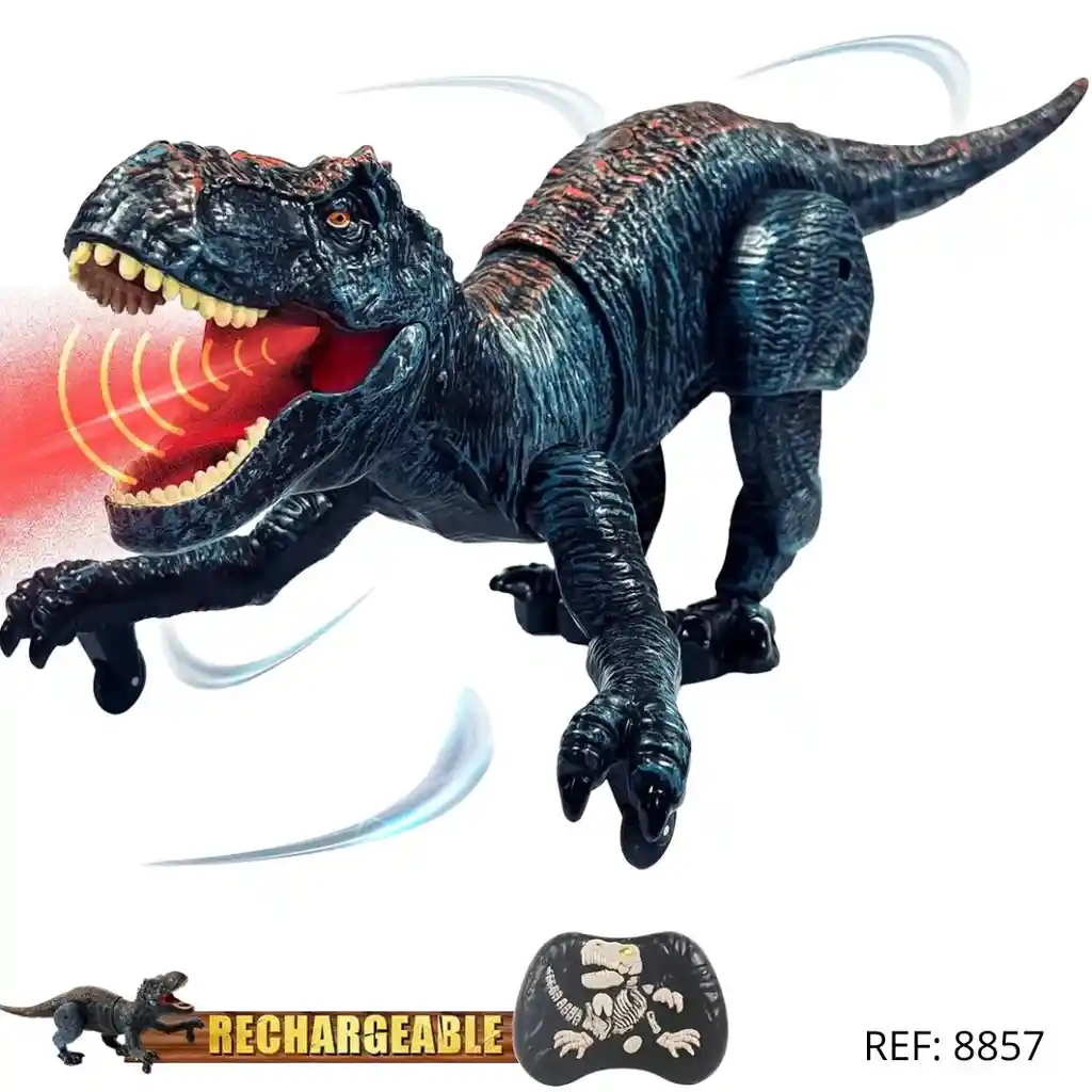 Dinosaurio RC con luz, sonido y spray, movimiento realista y materiales seguros. Control 2.4GHz para jugar sin interferencias. Ideal para niños amantes de la aventura prehistórica.