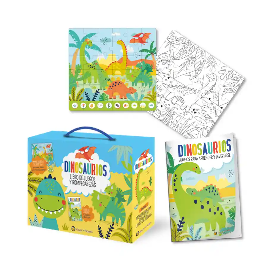 Fantástico set de libros y rompecabezas:Libro con más de 30 actividades y juegos.Rompecabezas 3 en 1, para armar, hacer búsquedas y colorear.Packaging estilo valija con manija de soga de color.Puzzle gigante.Reversible (un lado color y otro para colorear)Cantidad de piezas 36, se presenta desarmado en una bolsa transparente.