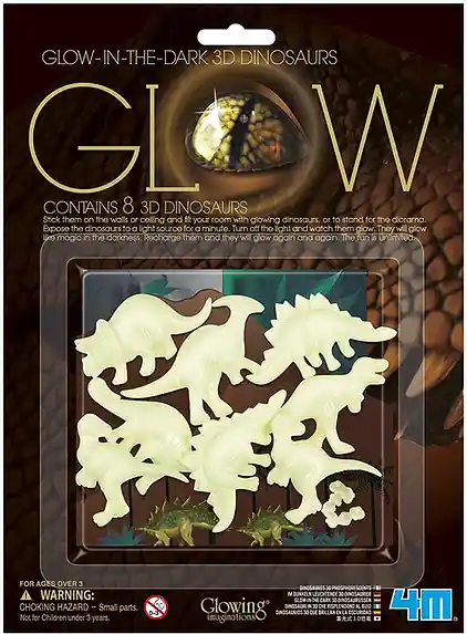 Empaque de regalo sin costo adicional, escríbenos al finalizar la compra. 3 años + Estimule la imaginación y la creatividad con los dinosaurio 3D . Decora techos y paredes o construye dioramas con estos dinosaurios que brillan en la oscuridad. Este juego incluye cinta de doble cara para pegar fácilmente los dinosaurios a cualquier superficie dura. Activa y recarga el brillo exponiendo las piezas de dinosaurio a la luz. Apaga las luces y observa cómo estos dinosaurios brillan en la oscuridad.