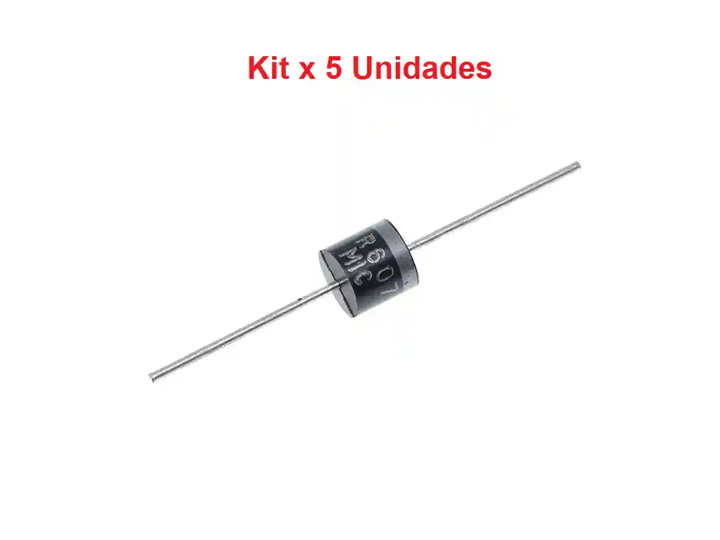 Dispositivo electrónico ampliamente utilizado en la electrónica de potencia. Voltaje - CC inversa (Vr) (máx.) 1000 V Corriente - Rectificado promedio (Io) 6A Voltaje - Adelante (Vf) (Max) @ If 1,2 V a 6 A Velocidad Recuperación rápida = <500ns,> 200mA (Io) Tiempo de recuperación inverso (trr) 500 ns Corriente - Fuga inversa @ Vr 10 µA a 1000 V Capacitancia @ Vr, F 100pF a 4 V, 1 MHz Tipo de montaje Through Hole Paquete / Estuche R6, axial Paquete de dispositivos del proveedor R-6 Temperatura de funcionamiento: empalme -65 ° C ~ 125 ° C LA COMPRA INCLUYE: 5 x DIODO ALTA RECUPERACION FR607 6A 1000V