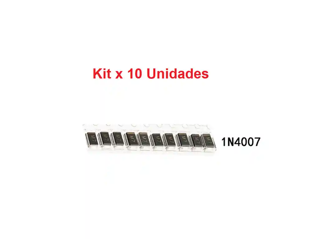 El diodo 1N4007 es un componente electrónico semiconductor, regularmente están fabricados de silicio o germanio, su función principal es permitir la circulación de la corriente en un solo sentido. John Ambrose Fleming fue un físico e ingeniero eléctrico británico realizo el descubrimiento en el año de 1904. Es considerado uno de los pioneros de la electrónica. La palabra diodo del vocablo griego se traduce como (pasaje angosto). El término se ocupa en el área de la electricidad e electrónica. Es considerado un semiconductor debido a que solo permite la circulación de flujo de electrones en una única dirección con las singularidades similares a un interruptor. Consta de dos terminales un ánodo (positivo) y cátodo (negativo). Una manera de saber cuándo un diodo está en cortocircuito es probando con el multímetro ambas direcciones dando una lectura de caída de tensión de (0 v a 0.4 v ). Es de saber que cuando un diodo se encuentra abierto no permite la circulación de energía eléctrica en ambos sentidos. El multímetro mostrara OL (circuito abierto) en las dos direcciones. Consiste en permitir el flujo de energía eléctrica en un solo sentido, por lo cual se comporta de dos maneras: Polarización directa: permitiendo el paso de la corriente eléctrica. Polarización inversa: impidiendo el paso de la corriente eléctrica. Se utilizan regularmente como rectificadores de señales, aplicándolo en fuentes de CA a CD. Si usted busca comprar un diodo (1N4001) con alguna característica en especial. Aquí en las especificaciones técnicas le dejamos los puntos a considerar. Voltaje repetitiva inversa de pico: 1000 Volts Caída de voltaje directa: 1.1 V max Corriente rectificada media con polarización directa Io: 1 Amp Corriente máxima de pico: 30 A max Disipación de potencia a 25 °C: 3 Watts Rango de temperatura de unión operativa: -50 °C a 175 °C Capacitancia total (@ 4V, 1 MHz): 15 pF Tipo de encapsulado: DO-214AC Peso: 0.30 gramos (Aproximadamente) LA COMPRA INCLUYE: 10x DIODO SMD 1N4007 M7