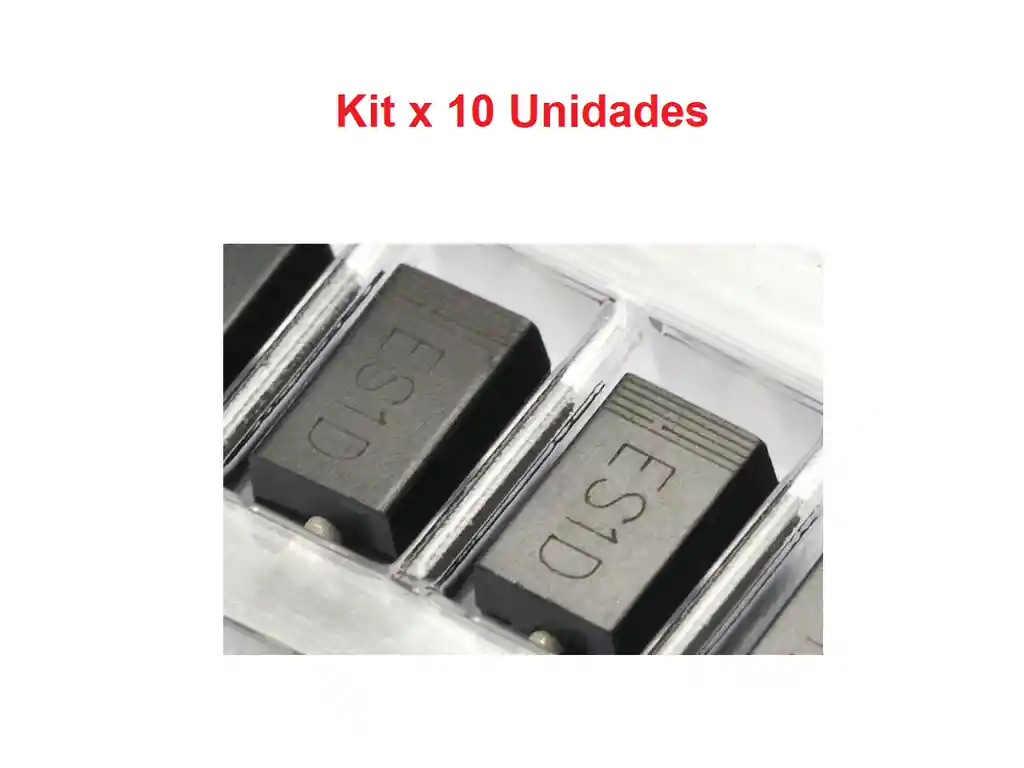 Dispositivo electrónico ampliamente utilizado en la electrónica de potencia, gracias a su alta corriente y bajo nivel de voltaje en estado de conducción y en sentido inverso. Soporta alto voltaje con una corriente muy pequeña de fugas. A diferencia de la serie 1N400X, presenta una rápida recuperación en polarización inversa, ideal para circuitos de conmutación. Rectificador recuperación ultrarrápida Características Para aplicaciones de montaje en superficie Unión de vidrio pasivado Paquete de perfil bajo Fácil de elegir y colocar Alivio de tensión incorporado Tiempos de recuperación ultrarrápidos para una alta eficiencia Este dispositivo no tiene Pb y cumple con RoHS Aplicaciones Este producto es de uso general y adecuado para muchos Aplicaciones ESQUEMA DE MARCADO SMA LA COMPRA INCLUYE: 10x DIODO SMD SF14 ES1D