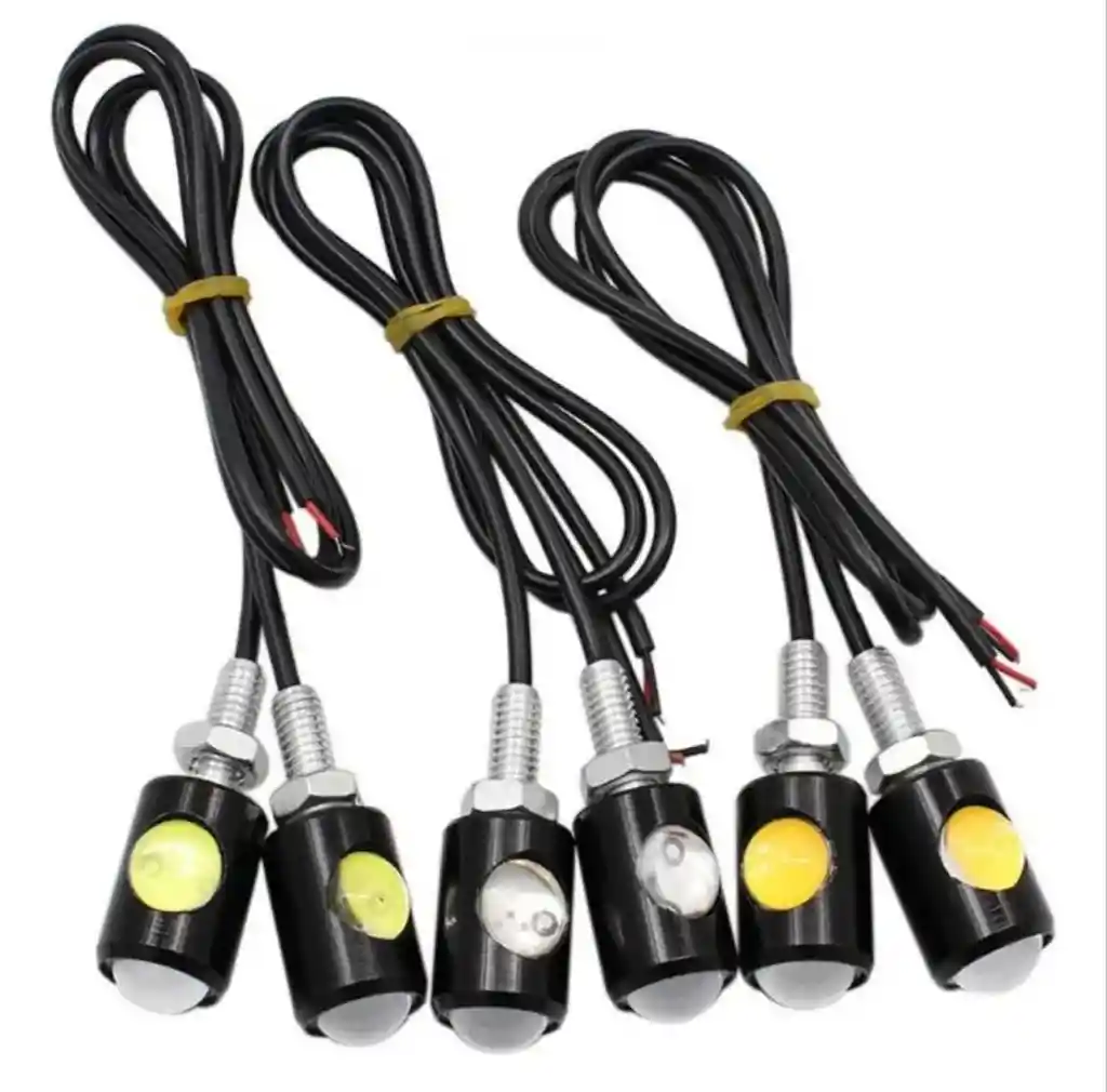 Luz Led Ojo De Águila Niebla Luz Día 4000 Lumens Colores Disponibles : Naranja Direccional DESCRIPCIÓN DEL PRODUCTO: • Fácil de instalar • Bajo consumo de energía • Calidad y estabilidad • Estas luces no afectará a la conexión original del vehiculo • Novedoso ESPECIFICACIONES ADICIONALES - Material: Aleación De Aluminio + Led - Impermeable: Aprueba de agua IP65 - Potencia: 10 W por cada Luz - Voltaje: DC 12 V - Tipo de Luz: Fija - Medidas: Diámetro del Ojo – 16mm Largo completo: 38mm Largo del tornillo – 15mm Largo del foco – 23mm Largo de cable: 37cm - Vida útil: más de 30000 horas - Lumens: 4000 LM