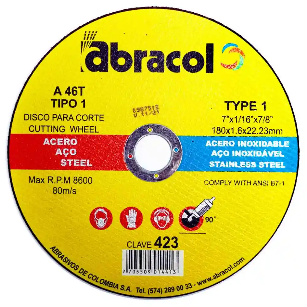 DISCO ABRACOL AMARILLO CORTE METAL 7 (DT1 180X16X2223MM) (423) (ABD2A0046074)