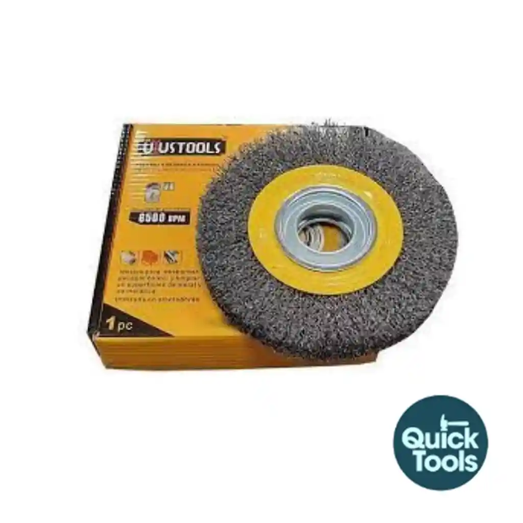 El disco esmeril trenzado UYUSTOOLS EBR106 es una herramienta de alta calidad diseñada para ofrecer un rendimiento excepcional en tareas de desbaste y acabado de superficies metálicas. Con un diámetro de 6 pulgadas, este disco es ideal para usar en esmeriles angulares y herramientas similares. Características Principales: Dimensiones: 6 pulgadas (150 mm) de diámetro, lo que proporciona un área amplia para trabajar y una mayor capacidad de eliminación de material. Construcción: El disco está fabricado con hilos de acero trenzado de alta resistencia, lo que garantiza una larga vida útil y una excelente durabilidad bajo condiciones de trabajo exigentes. Aplicaciones: Perfecto para el desbaste y limpieza de superficies metálicas, eliminación de óxido, y preparación de superficies para soldadura o pintura. Rendimiento: Su diseño trenzado permite una eliminación eficaz de material con menor esfuerzo, reduciendo el tiempo de trabajo y el desgaste de la herramienta. Seguridad: Diseñado para operar a altas velocidades de manera segura, cumpliendo con los estándares de seguridad industrial. Este disco esmeril trenzado es una herramienta confiable para profesionales y aficionados que buscan resultados de calidad y una herramienta duradera para sus proyectos de metalurgia.