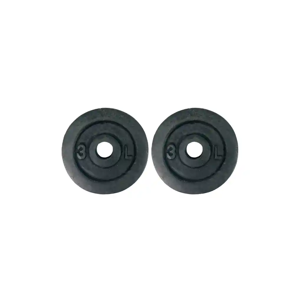 Discos en hierro fundido para barras estándar de 1" | CAP Barbell | Weight Plates Características: Material: Hierro fundido Diámetro externo: 13.5 centímetros Diamétro interno 1 pulgada Peso: 1.5kg cada disco aprox 3lb Incluye 2 discos Peso total 3kg Beneficios: -Peso completamente garantizado. -Pintura negro brillante. -Vuéltete más fuerte añadiendo mas peso en tus entrenamientos. Cast Iron Discs for 1" Standard Bars | CAP Barbell | Weight Plates Features: Material: Cast Iron Outer Diameter: 13.5 centimeters Inner Diameter 1 inch Weight: 1.5kg each disc approx 3lb Includes 2 discs Total Weight 3kg Benefits: -Fully guaranteed weight. -Gloss black paint. -Get stronger by adding more weight to your workouts.