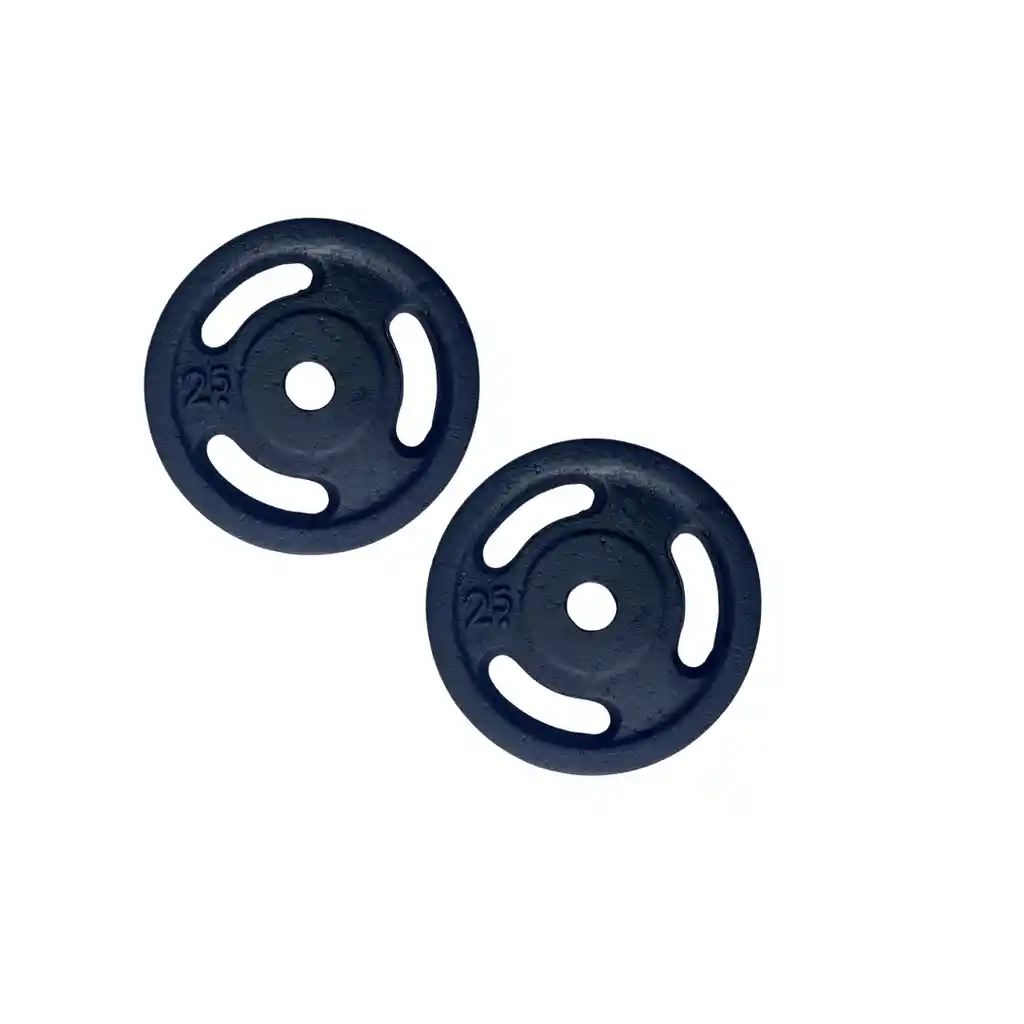 Discos en hierro fundido Características: Material: Hierro fundido Diámetro externo: 19.5 centímetros Diamétro interno 1 pulgada Peso: 2.5kg cada disco aprox 5lb Incluye 2 discos Peso total 5kg Beneficios: -Peso completamente garantizado. -Pintura negro brillante. -Vuéltete más fuerte añadiendo mas peso en tus entrenamientos. Cast Iron Discs for 1" Standard Bars | CAP Barbell | Weight Plates Features: Material: Cast Iron Outer Diameter: 19.5 centimeters Inner Diameter 1 inch Weight: 2.5kg each disc approx 5lb Includes 2 discs Total Weight 5kg Benefits: -Fully guaranteed weight. -Gloss black paint. -Get stronger by adding more weight to your workouts.