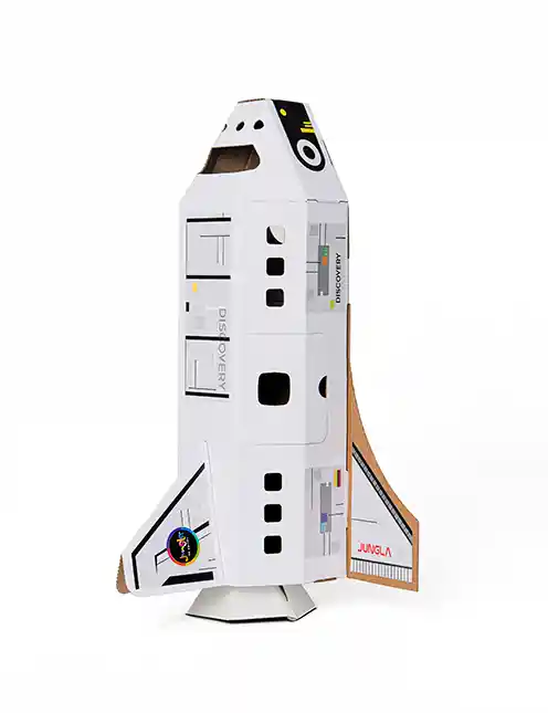 Lo bueno del Discovery Espacial es que con el y tu imaginación. puedes llegar a lugares fuera del universo. el juguete hecho de cartón ecológico que te trae Jungla de Cartón. juguetes para armar. decorar. y divertirse.