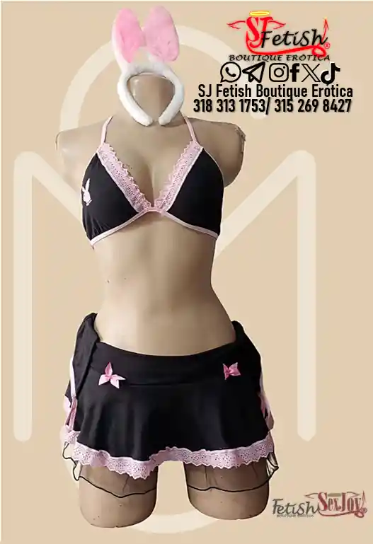 Sexy conjunto disfraz de conejita playboy Incluye: sospen de amarre, tanga de amarre, falta, orejan en felpa y par de muñequeras Talla Única: se ajusta muy bien para tallas entre la S y la M, disponible en sj fetish boutique erotica, boutique erotica, boutique erotica armenia, sex shop, sex shop armenia, tienda erotica, tienda erotica armenia
