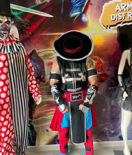Disfraz Cosplay de la Saga de video juegos y peliculas mortal Kombat, Estos Trajes son elaborados a mano, por lo que puede presentar pequeños desperfectos que son propios de su naturaleza en virtu de su proceso de elaboracion y no constituyen un problema para el buen uso del traje, el disfraz se encuentra elaborado con materiales sinteticos cuero y cuerina . Disfraz TALLA: UNICA consta de 10 piezas 1. kimono o camisón , 2. protector piernas, 2 protector de brazos, 1 pantalon 1. cinturon 1. Sombrero, 2 evillas de brazo. Debido a politicas internas y de bioseguridad si se presenta algun inconveniente con el traje debe informarse inmediatamente ya que por la naturaleza del producto no se aceptan ni cambios ni devoluciones pasado el dia de la compra.