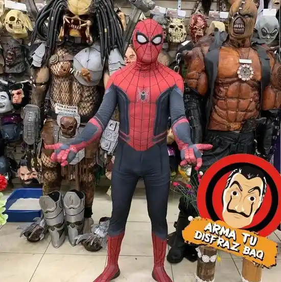 Disfraz diseñado en Licra expandex Disponible en Talla M - L, consta de 2 piezas: 1. Enterizo y 1. mascara Debido a politicas internas y de bioseguridad si se presenta algun inconveniente con el traje debe informarse inmediatamente ya que por la naturaleza del producto no se aceptan ni cambios ni devoluciones pasado el dia de la compra.