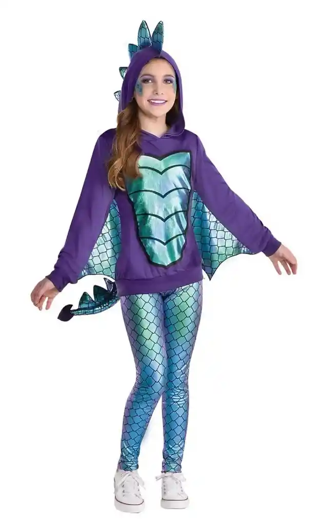 Observa cómo tu hijo se transforma en un dragón místico de una tierra mágica con este disfraz de Halloween de dragón místico para niños. Este disfraz de dragón de fantasía incluye una camiseta de manga larga con capucha y calzas a juego; tiene alas, espinas y cola turquesas iridiscentes. Este disfraz viene en talla pequeña (talla de vestido 4 a 6) para niños y se ajusta a la talla. Perfecto para Halloween, concursos de disfraces, fiestas temáticas, cosplay y más. (S) 4-6