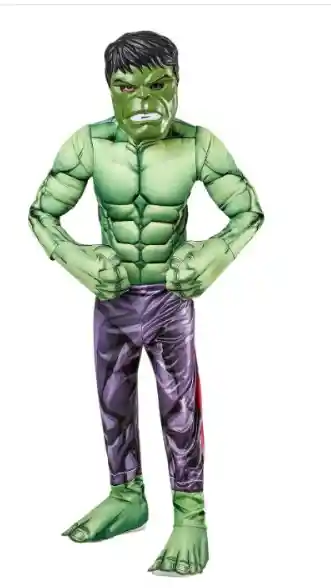 Disponible en talla M niño ¡Hulk Smash! Si su hijo está listo para liberar a la bestia desde dentro, entonces el disfraz infantil de Hulk es perfecto para él. Este atrevido disfraz viene con un mono acolchado que imita los músculos, la máscara, las botas y los guantes de Hulk. Muestre a todos que hay un buen tipo adentro cuando su hijo se una a los Vengadores para derrotar a Thanos.