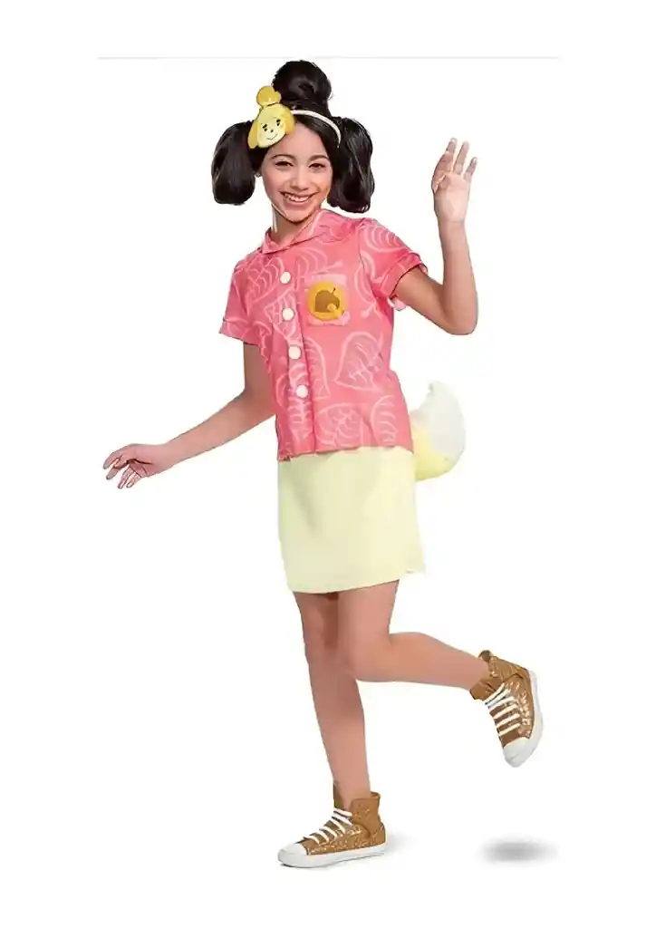 TALLA DISPONIBLE: L-NIÑO ACERCA DE ESTE ARTÍCULO Echa las noticias diarias en tu isla con este disfraz de Isabelle Incluye vestido con camisa de hoja rosa con botones, falda de color crema y cola de felpa de espuma desmontable Diadema con arte troquelado sublimado de Isabelle para completar el look Sin garantía