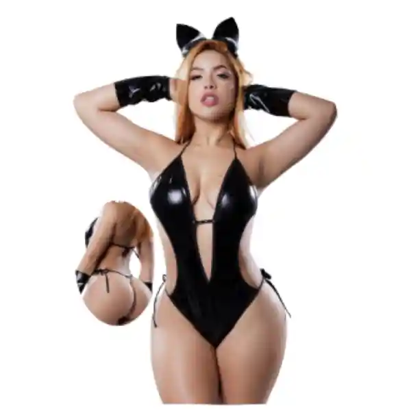 1 DIADEMA CON OREJITAS 1 PAR DE GUANTES 1 BODY TELA TIPO CUERINA TALLA ÚNICA