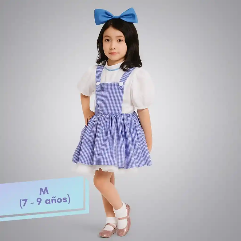 Talla: M (7-9 años) Incluye: 1x Vestido con blusa. 1x Moño. ***NO INCLUYE ACCESORIOS ADICIONALES*** *Imagen de referencia. Importante: Debido a la diferencia de pantallas y efecto de la luz, el color real del artículo puede ser ligeramente diferente al color mostrado en las imágenes.