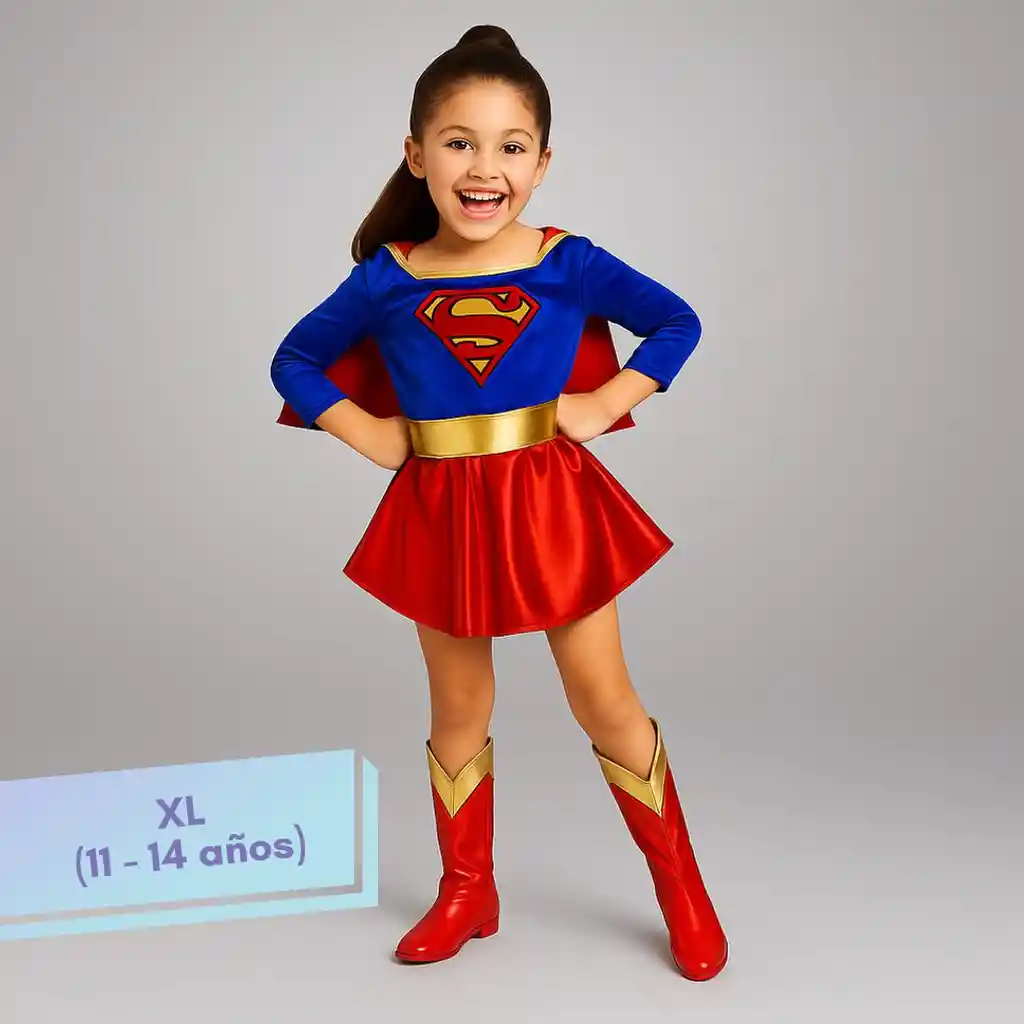 Talla: L (11-14 años) Incluye: 1x Vestido con capa y cinturón. 2x Cubre botas. ***NO INCLUYE ACCESORIOS ADICIONALES*** *Imagen de referencia. Importante: Debido a la diferencia de pantallas y efecto de la luz, el color real del artículo puede ser ligeramente diferente al color mostrado en las imágenes.