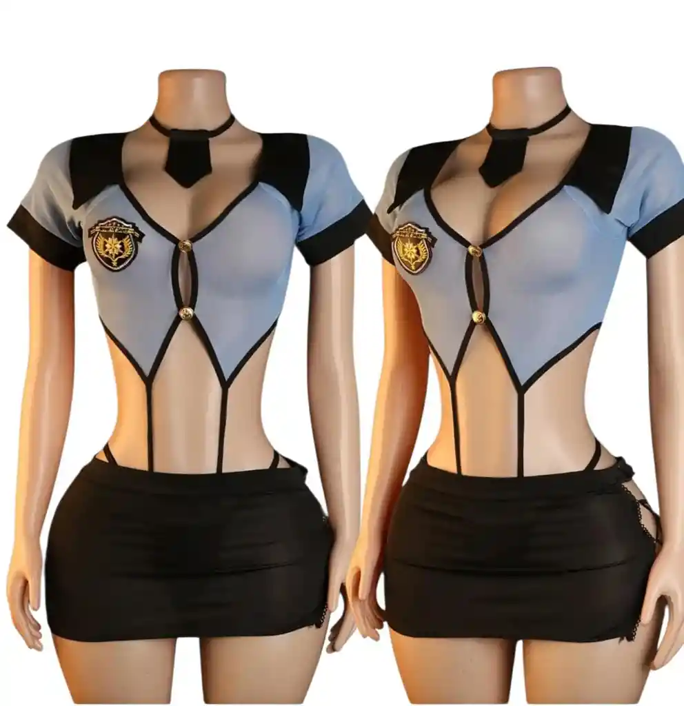 Disfraz de policía para mujer, minifalda, insignia Hecho de tela suave, transpirable, cómodo al tacto y al usar, te hace sentir bien Camiseta corta con diseño de bloques de color, manga corta, Ideal para Halloween, fiestas temáticas, juegos de rol, bailes de máscaras, bailes de disfraces, cosplay, etc