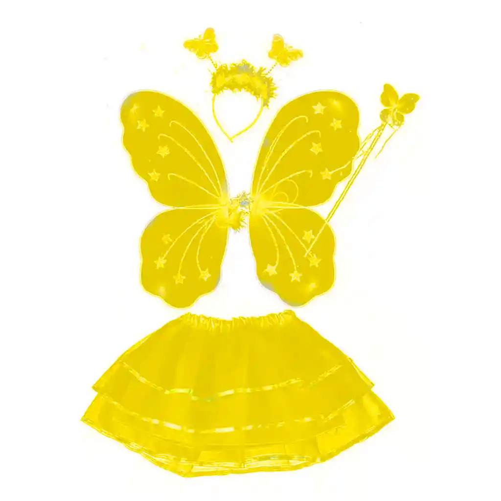 Disfraz de mariposa ideal para la época de Halloween, alas llamativas, tutú suave y flexible, diadema con antenas y una varita única, ideal para complementar un disfraz. Características: • Importante: El diseño de la falda es completamente aleatorio, se enviaran según disponibilidad a la hora del despacho. • Material: Plástico y tela. • Tamaño Aprox. Producto: Alas: 36 x 50 x 2 cm / Falda: Alto Aprox.: 31 cm / Contorno cintura: (mínimo): 20 cm, (máximo): 40 cm / Diadema: 19 x 19 x 3 cm / Varita: 35 x 6,5 x 3 cm. • Peso: 97 g • La falda es talla única. • Apto para niñas de 3 a 6 años aprox. • El kit trae todo lo necesario para tener un disfraz rápido, hermoso y llamativo. • Accesorios totalmente seguros para las más pequeñas. • Las antenas son muy llamativas y tienen en sus puntas mariposas que al contacto con la luz dan un efecto de reflejo en otro color. • Ideal para fiestas de Halloween, obras de teatro o fiestas temáticas. • Las alas son ligeras y cómodas. • La falda es ajustable y cómoda adaptable a la mayoría de cinturas. • Varita decorada con tiras de confeti plateado. • Disfruta de la noche de brujas con este disfraz único para que las niñas se vean encantadoras y hermosas. Contenido del paquete: • 1 Alas de mariposa. • 1 Diadema con antenas. • 1 Falda tutu. • 1 Varita de mariposa.