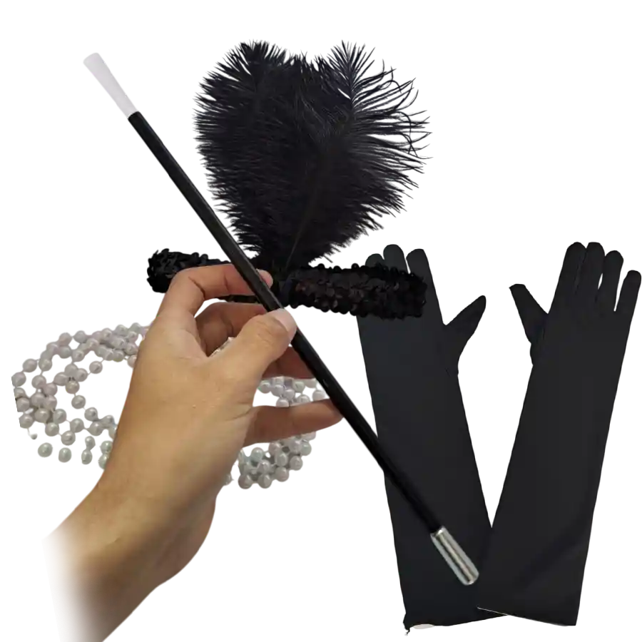 Disfraz Mujer Años 20 Accesorios Gatsby Flapper Charleston – Set x4 Piezas Revive el glamour y la elegancia de los años 20 con este set de accesorios estilo Gatsby, ideal para fiestas temáticas, disfraces vintage o eventos de época. Luce como una auténtica dama del Charleston con un toque de sofisticación y brillo. Incluye: 1 Diadema con pluma estilo vintage. 1 Collar largo de perlas. 1 Cigarillo de plástico decorativo 1 Par de guantes largos elegantes, (No incluye vestido) ¡APROVECHA!: * Producto Nuevo, En su Empaque. * Contenido: 1 SET * Somos Distribuidores de la Marca. * Entregas el Mismo Día. (Bogotá) * Disponibles en las REF. y Colores Aptos para ELEGIR * Inspirado en la moda de los años 20. * Ideal para fiestas temáticas, Halloween o cosplay. * Materiales cómodos y de buena calidad. * Estilo elegante y sofisticado. * Tamaño único adaptable para mujeres. Este set te permitirá complementar tu atuendo de forma perfecta y destacar en cualquier ocasión especial. -------------- disfraz gatsby, años 20 mujer, flapper, charleston, accesorios vintage, collar perlas, guantes largos, diadema pluma, disfraz elegante, fiesta temática, halloween, cosplay mujer, estilo retro, accesorios de época, look glamuroso, fiesta 1920s, moda vintage
