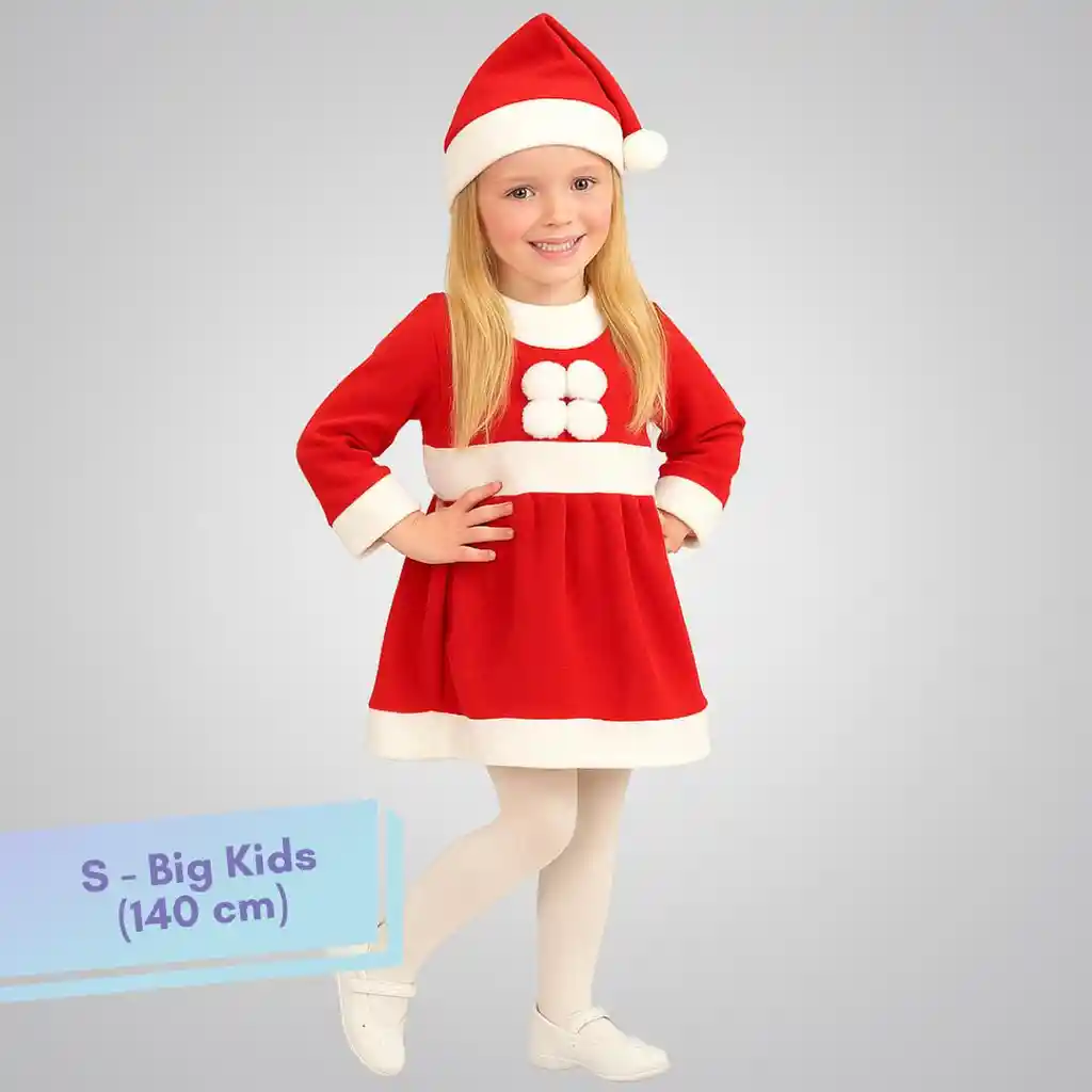 Talla: S Big Kids (140 cm) Incluye: 1x Vestido 1x Gorro ***NO INCLUYE ACCESORIOS ADICIONALES*** *Imagen de referencia, los detalles del traje o los accesorios pueden ser levemente diferentes a los mostrados en la imagen. Importante: Debido a la diferencia de pantallas y efecto de la luz, el color real del artículo puede ser ligeramente diferente al color mostrado en las imágenes.