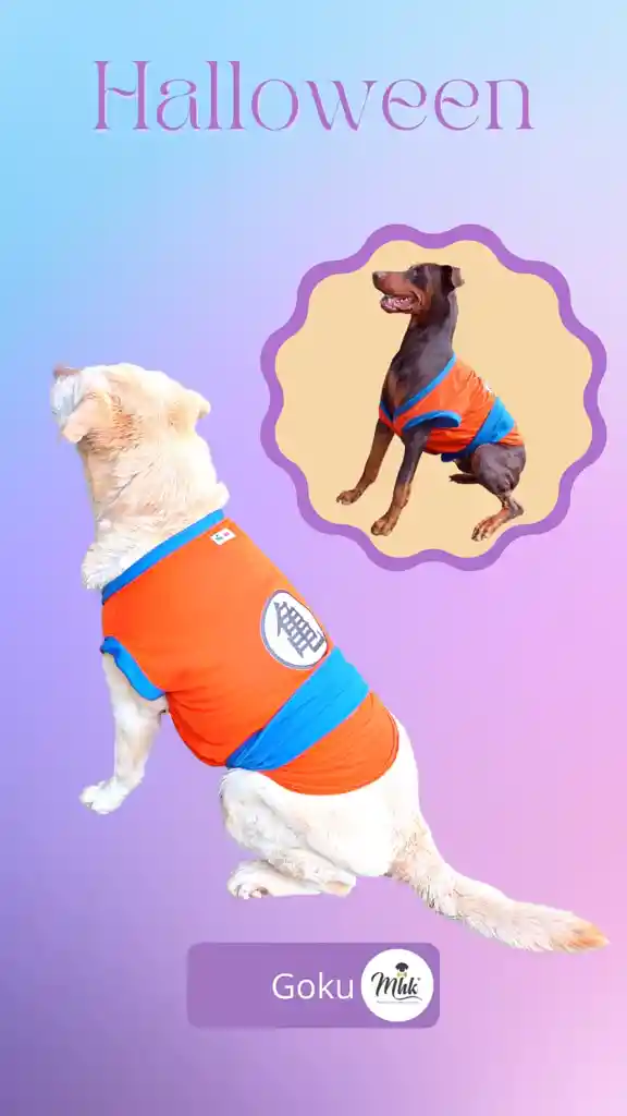 GOKU incluye cinturón Disponibles en talla S Colección exclusiva de MHK para mascotas de todos los tamaños, hembras y machos. También diseñamos sobre medida su modelo favorito.